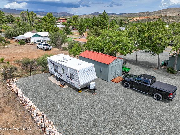 Move in ready cozy home with tons of curb appeal. This 1 bedroom 1 bath home has all the upgrades and sits on a quarter acre lot with beautiful landscaping, RV parking and storage shed / workshop. You will love the covered patio which overlooks the quaint little village of Mayer. Inside you will find a perfectly upgraded and maintained home that shows like a model. Seller prefers to sell the home furnished. Full price offer will also include 23' travel trailer and Kawasaki 4WD Mule. Full RV hookups mean the trailer can function as separate guest house.