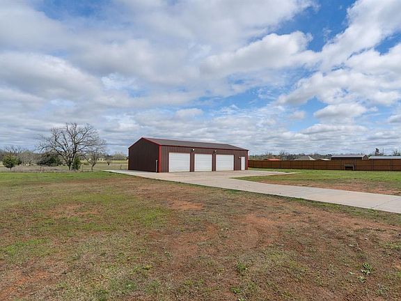Welcome to this 2020 build with many exceptional features on almost three-quarters of an acre. This property includes a spacious four-bedroom, three-bathroom home nestled on a quiet street in Shawnee, Oklahoma. One highlighted feature is a remarkable 1,500 sqft utility building/workshop with electricity, and a three-car garage option. There are endless possibilities for storage or creative projects. Upon entry into the home, you will be greeted by an ample living space with a cozy brick fireplace and an inviting area ideal for entertaining. Boasting a cleverly designed open layout, this property offers a spacious kitchen with custom cabinetry, a large pantry, and an optional bar top for extra seating. Next is a distinctive office space with glass doors in the entry and built-in cabinetry. The highlight of the home is the expansive primary bedroom featuring a double-sink vanity, soaker tub, spacious shower, and a large closet with custom built-ins. Adjacent to the primary bedroom is a guest bedroom and on the other side of the home, there are two additional carpeted bedrooms that share a bathroom. Upstairs awaits a sizable game room or playroom perfect for leisure. Outside, a covered patio overlooks the vast backyard. Don't miss the chance to call this exceptional property your home sweet home.