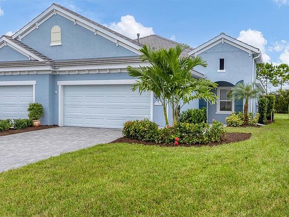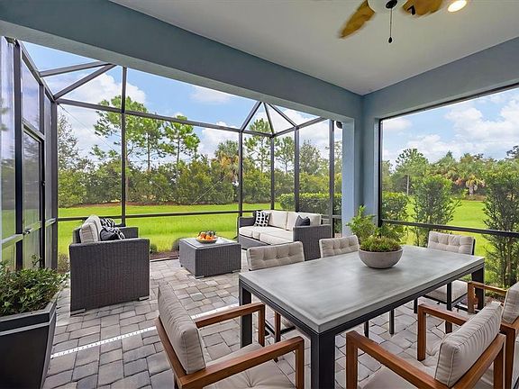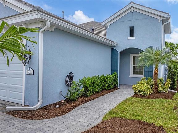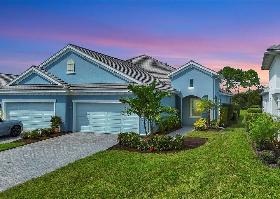 Under contract-accepting backup offers. Come check out this meticulously maintained, 2023 built villa located in the award winning gated neighborhood of Indigo! This meticulously cared for ''Tidewinds'' villa boasts 2 bedrooms, 2 bathrooms, a generous sized study/den, indoor laundry room, large two-car garage, extended lanai with premium pavers and super private rear conservation area! This home is situated next to a cul-de-sac AND an emergency only gate which makes this one of the quietest streets in the community. Your new villa also has ''smart home'' capabilities which allows you to remotely adjust your thermostat, open and close your garage as well as lock and unlock the front door! Rest assured your new villa is built strong and safe with its HURRICANE IMPACT WINDOWS throughout, cinder block construction, concrete tile roof AND desirable "X'' floodzone. Throughout this freshly painted villa you will find 5 1/4" deco baseboards, LED recessed lighting, 16-seer rated TRANE HVAC, ceramic tile, upgraded light fixtures, gutters and much more! The luxurious primary suite offers TWO oversized closets WITH custom cabinetry, large walk-in shower with separate his and hers vanities with quartz countertops as well. The kitchen boasts a large Island with breakfast bar, premium stainless steel appliances with exterior ventilated microwave plus LED undermount lighting that complements the premium quartz countertops. Open the three large HURRICANE IMPACT sliders and be amazed at not only the amount of room the paver rich extended screened lanai provides but your peaceful, undisturbed conservation area (NO rear neighbors). Your new lanai also comes equipped with a heightened cable connection and 110V electrical socket so no wires will be showing for any desired flat screen. The large 2-car garage comes equipped with a HURRICANE IMPACT garage door, several storage racks, ventilation which reduces the temperature inside and premium epoxy flake flooring. Indigo is an active community that features a full time on-site manager as well as a full time activities director that manages an extensive calendar of activities for all ages. A-Rated Gullett Elementary AND Mona Jain Middle school are right outside our gates too! You can also expect sidewalks on both sides of the street, ''Oasis'' pool/spa, resort style heated community pool/spa at the main clubhouse where you will find 5 cabanas with an abundance of seating, 4 pickleball courts, 2 bocce ball courts, 24-hour exercise gym, meeting room/banquet room and playground. Indigo is not only a community that takes care of all ground maintenance to include mowing, fertilizing, irrigation, shrubs and mulch but is right around the corner to a plethora of dining, banking, entertainment, public transportation and MORE!