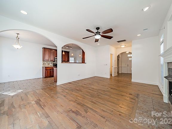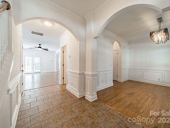 Great location close to I-77 and 485 with an easy drive to Uptown Charlotte. Enjoy living in the quaint, tree-lined neighborhood of Crosswinds, conveniently located close to shopping and dining. This home has an open floor plan with tile and hardwood floors throughout the first floor. Kitchen has a breakfast nook and spacious pantry. Large family room with a gas fireplace. Primary bedroom has vaulted ceilings, large windows for lots of natural light, and walk-in closet with built-in closet system. Primary bathroom has garden tub and double sinks. Entire interior has been freshly painted including the ceilings. Out back, there is a fenced in yard with a brick patio and detached garage. New concrete walkway has been added along the side of the garage.