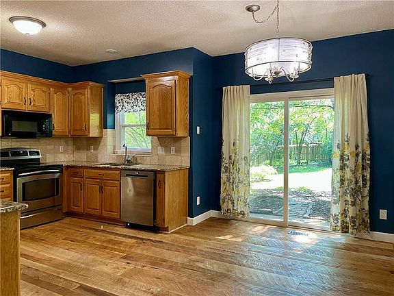 Fantastic four bedroom house in a great location close to everything Olathe has to offer, award winning schools, shopping, and highway access. The spacious main floor features a formal living and dining room, and the kitchen and breakfast area opens to the spacious family room with fire place. From the large sliding doors, you can access your private fenced backyard with soaring trees. The backyard also features a paver patio, wood deck, and fire pit. With a little love and attention, this backyard can become an entertainers dream. Upstairs you will find the large primary bedroom suite with a vaulted ceiling, private bathroom with jacuzzi tub, double vanities, and an expansive walk-in closet. The upstairs also has three other bedrooms and hall bathroom. The finished basement can be adapted to whatever you need, home theater, game room, exercise room, etc. This home is great opportunity at a great price and is ready for you to make it your home!