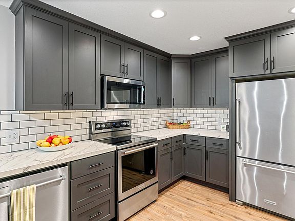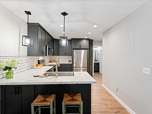 The lower level of this home is fully renovated with new LVP flooring, new kitchen including KitchenAid appliances, mission style, soft-close cabinetry, farm sink and knock-down ceiling, new light fixtures; the new kitchen has all of the Magnolia feels! Vaulted living room gives a spacious feel-