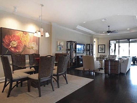 This home offers the ultimate in resort style living, gently used, on one of the largest bodies of water in Esplanade, this award winning updated Lazio 2014 model has 3 bedrooms, 3 baths, den, plus 2275 sq. ft. under air, quality through out. The kitchen sports upgraded 42" cabinets with an oversized center island, granite counter tops, wood laminate floors, the stainless steel appliances including Advantium 120 microwave and oven, 5 burner gas stove, dishwasher, double door refrigerator, double sink, small wet sink in island and a walk in pantry. The great room includes the kitchen, dining room, and living room all with a view to the lanai. Open the glass sliding doors to entertain inside or outside enjoying the water and sunset vistas from the extended lanai. The lanai offers a wide array of quality design features: cypress wood ceiling, built in gas fireplace, pool with spa, large sitting and dining area, outdoor kitchen and bar area, to relax and enjoy the sun or cool nights in your outdoor space with plenty of room for a large gathering of friends or family to entertain with the best views of the setting sun reflecting off the large lake. This home is a must see put it on your list to view today, you will not be disappointed! The wonderful Esplanade Golf & Country Club a gated community features maintenance free grounds, golf course, soon to have dining options, large amenity center with swimming pool, tennis courts, pickle ball courts, dog park, and if you so choose a very active social schedule.