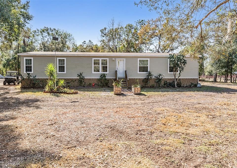 HORSE LOVERS DREAM.. Get ready to ride on this beautiful almost 5 acre piece of horse heaven. This property has a large arena, round pen and trail course. As you enter the half circular drive at the front of the house, you'll see your beautiful 2020 Champion built double wide with Four bed, and Two baths. Walking into the house you have an open living room that flows directly into the kitchen with a gorgeous island in the middle with tons of storage underneath! Off the left side of the kitchen and living room is a dining room, that connects to your family room. All of this is open for hosting great events, or even just watching tv while cooking dinner. The ideal split floorplan starts with the master bedroom and bath being at one side of the house. As you go in, you'll find a large master bedroom, with enough room for a California king and with a nice walk in closet. The master en-suite bathroom has a soaking tub, shower and dual vanities, with a ton of storage space. The other side of the home has three well sized bedrooms as well as a nicely appointed bathroom and good sized laundry room. Your new home also has a large energy efficient AC that was installed in 2023, tip out windows for easy cleaning, and washer and dryer. Outside is where you'll find your true paradise and horse owners dream. There is a large turnout at the front of the property. Separate stalls, and a large round pen. At the back of the property there's a training trail, designed for helping you train your equine friends. There's also a massive arena at the back of the property. All of this while being only minutes to the Veterans Expressway, giving quick access to all that Tampa/Citrus county have to offer. There is also a state park nearby and it's also close to the new schools that are only a short drive away. Come check out this move in ready home and you'll just need to bring the horses.