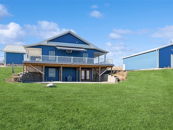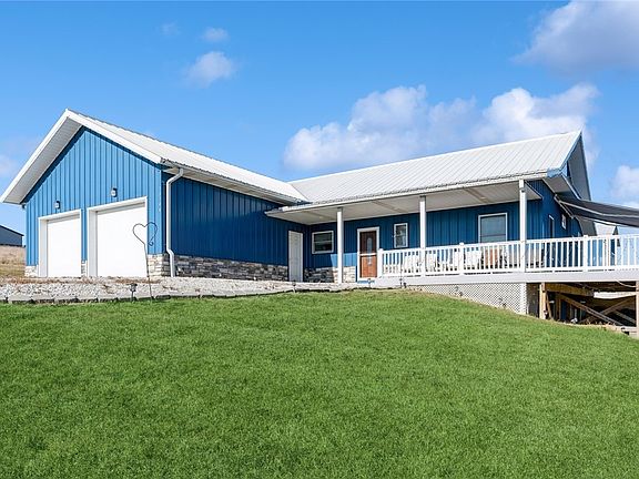 WOW!! PRICE IMPROVEMENT!! This exceptional 4-bed, 4-bath residence spans nearly 4 acres, presenting an idyllic retreat for those seeking space and serenity. Very well designed, the main level features three bedrooms, including a luxurious tiled bathroom with walk-in shower, complemented by the warmth of bamboo flooring throughout the open-concept living space & 10' ceilings. The kitchen is a culinary haven, adorned with quartz countertops & soft-close cabinets. French doors seamlessly connecting to the outdoors, the dining area opens to a composite wrap-around porch, providing an ideal setting for indoor-outdoor living. Go downstairs to a finished walkout lower level with another 1,280 sqft of living space features a bedroom and additional bathroom with walk-in shower and tile flooring. Adding to the allure is a detached 24x48 fully insulated Morton building with 11' & 10' doors and 100amp service. You can’t miss the 2car attached garage, and a 10x16 shed, offering ample storage and workspace options. The property's exterior showcases a weather ledge prestige stone wrap-around, metal siding and roof, ensuring both durability and peace of mind. A testament to modern efficiency, the home is remarkably energy-efficient with 8 inch walls, complemented by an attached awning off the front porch. Appreciate the charm of this rare find. Schedule a showing to experience this property and make it your own private oasis