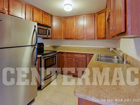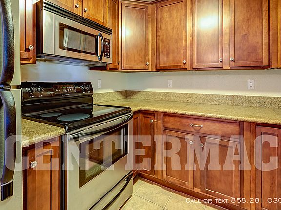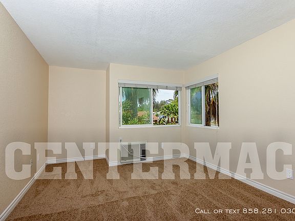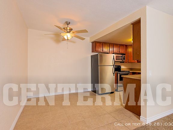 Desirable top floor (2nd floor) 2BR/2 Bath unit in the heart of Poway. Two assigned, covered carports, and separate outside locked storage area near front door. Kitchen includes granite countertops and stainless appliances. Dual-pane vinyl windows. Spacious master BR with large closet and built-in cabinets. Wall-mounted AC in living room. Close to shopping, restaurants, parks and the exceptional Poway schools. Complex includes a community pool and convenient coin laundry facilities. Water included in rent. Please do not disturb current tenants.