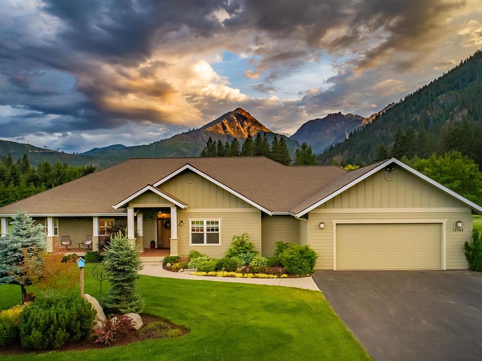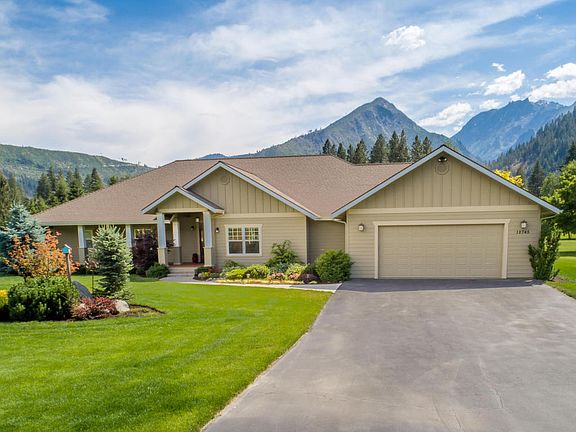Discover this Icicle Valley haven offering quintessential Enchantment views, lush level acreage, elegant interior finishes and the ease only single level living affords. This 3 bed, 3 baths design marries ideal open living spaces with beautiful personal retreats. Find rich cabinetry, warm hardwood flooring, soothing tile and stone applications throughout the kitchen, living and dinning spaces. A perfectly appointed master suite includes a sumptuous 5 piece bath complete with walk in shower and indulgent soaking tub; a walk in closet and a private office space. A second bedroom suite provides guests with terrific mountain views and a private sundeck. Idllic outdoor living can be found on the generous rear sun deck that soaks in those iconic mountain views. This is life in the Icicle Valley!