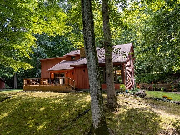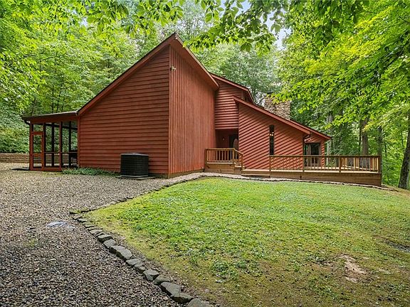 This beautifully landscaped and well-maintained rustic home tucked away in the woods is a rare find. This 3-bedroom, 2 bath home features vaulted ceilings, sky lights, large windows for plenty of sunlight, a spacious master suite on the main level that walks out to a screened in porch. Gorgeous Brown County stone double sided fireplace featured in the living room and den. Custom and unique finishes throughout giving the home a warm country feel. Relax on the front and back deck and enjoy nature or entertain guests in the large 1,700 sq. ft. heated garage that is plumbed with a half-bath. Basement is dry and offers plenty of storage space. You won't want to miss out on this beautiful country home!