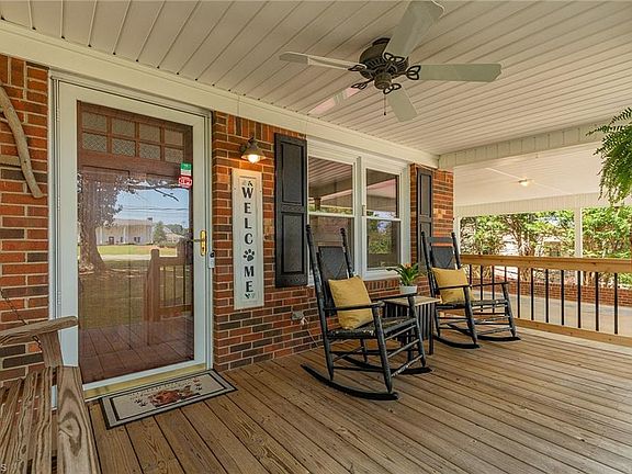 Here you will find a brick ranch home located on a secluded lot with piles of entertainment style amenities including a custom bar out back with sitting areas, an outdoor stone fireplace, a brand new back deck, & a fenced in backyard! Enjoy a quiet morning on the front porch sipping coffee & watching the sunrise. This home has been VERY well loved and includes tons of amazing updates - all new HVAC system, all new windows, new back deck, & new front porch railings (2024). These sellers pay close attention to detail as many rooms have crown molding, custom shelving, & custom cabinetry. Do not overlook the craftsmanship found in every detail of this home; make note of the gorgeous front door which was handcrafted by the seller. You are not lacking storage here! There is a partially unfinished basement, utility closet, AND a 24 x 36 workshop ready to store all of your belongings! Conveniently located near High Rock Lake. Selling AS IS. Agent related to seller.