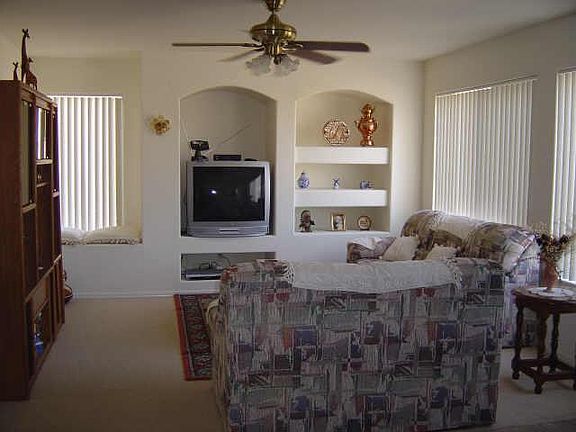 Fantastic model quality home. Upgrades galore, located on a beautiful lot. This home is immaculate. Ceramic kitchen counters, 4 panel interior doors, RV gate, built in media center, cultured stone exterior elevation, flat panel upgraded maple cabinets, rear covered patio, front and back watering system. Satellite dish, receiver convey. Buyer to verify all schools and sq ft. Washer & Dryer are 'as is'