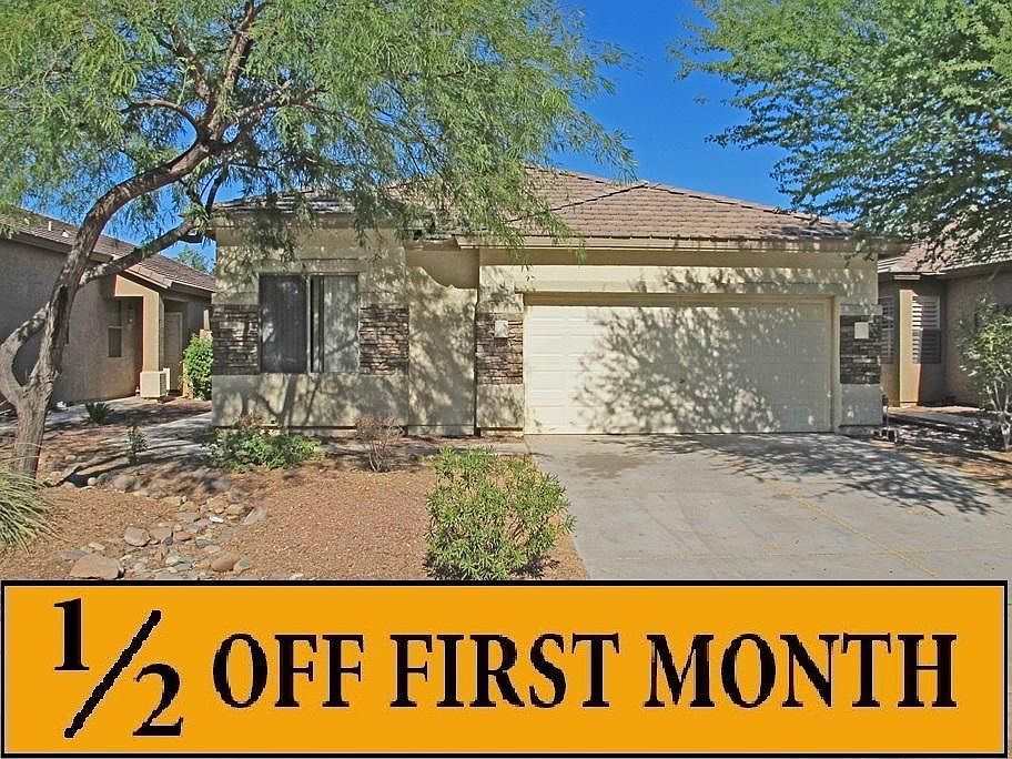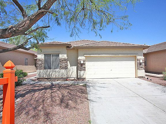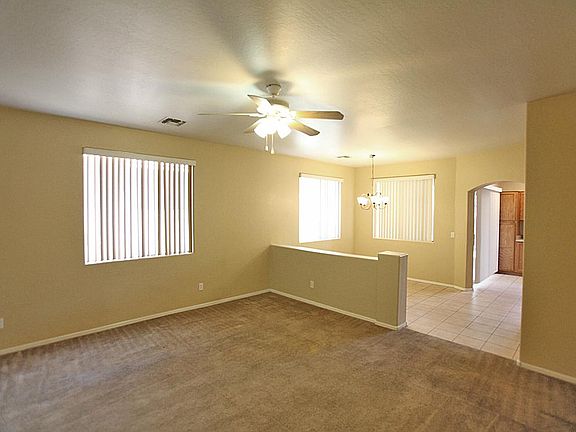 4 Bedroom + 3 Bathroom Single Story home located in Litchfield Park. Home features split floorplan with great room and dining room. Kitchen features refrigerator, range/oven, built-in microwave and dishwasher. Carpet and tile throughout. Master suite features separate tub and shower, dual sink and private toilet room. Backyard features covered patio and grassy area. 2 car garage with opener.