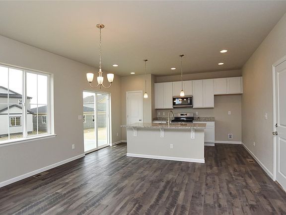 BRAND NEW HOME! Beautiful curb appeal with charming covered porch, located in front of green belt. Upgraded white cabinets with granite throughout! Vinyl plank through main floor and upgraded stainless steel appliances and gas range. Great open floor plan with 4 bedrooms and laundry upstairs.
