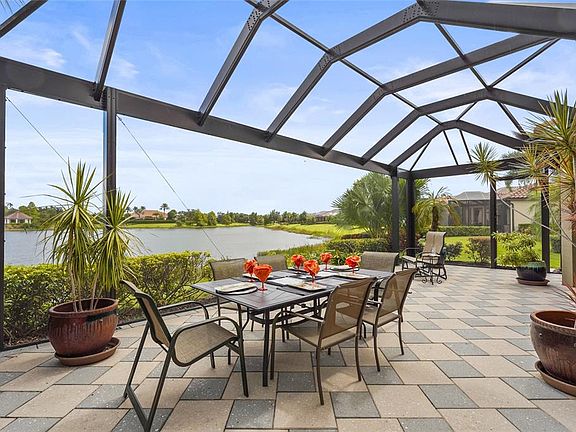 Under contract-accepting backup offers. Experience resort-style living every day in this beautifully appointed Lazio model located in the highly sought-after Esplanade Golf & Country Club at Lakewood Ranch. Perfectly positioned on one of the most desirable lots in the community, this residence captures breathtaking water views overlooking the community’s secondary pool and amenity center, creating a tranquil backdrop that sets the tone for everyday relaxation and entertaining. Step inside and you’ll immediately notice the attention to detail throughout. Custom murals add artistic character and warmth, while tray ceilings with crown molding elevate each room with timeless sophistication. Designed for both comfort and function, this home features custom built-in closets, offering a blend of style and practicality that discerning buyers will appreciate. The heart of the home flows seamlessly to the outdoors, where a custom extended patio and panoramic screen enclosure frame the stunning water view. A motorized pergola allows for effortless shade control, while the custom outdoor kitchen and grill make alfresco dining a year-round delight. The recently refreshed landscaping enhances the serene setting, giving the home exceptional curb appeal and a true sense of retreat. As a non-golf deeded property, you’ll enjoy access to Esplanade’s world-class resort amenities including resort-style pools, fitness and wellness centers, tennis, pickleball, dining, and vibrant social programming. Residents also have the luxury of enjoying on-site spa and massage services as well as professional esthetician treatments that bring the resort experience right to your doorstep. This is more than a home. It is a lifestyle defined by luxury, leisure, and connection. Discover the perfect balance of elegance and ease in one of Lakewood Ranch’s premier gated communities.