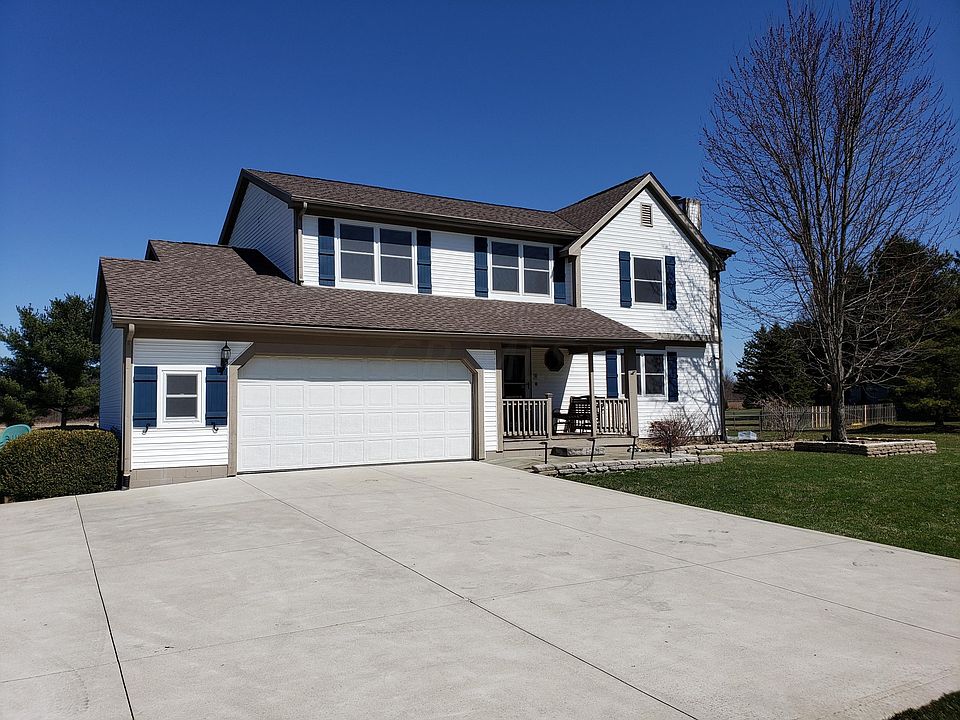 Prime & Private Location! All this is only mins. to New Albany, Westerville & Sunbury. Solid built 2x6 constructed, on 1 acre in Big Walnut Schools. This 2317 sq. ft. 4 BR 2.5 bath home offers open floor plan living and 4 BR's up. Master BR features in suite bath & walk in closet. 2+car garage, fenced backyard, covered porch & deck. Basement ready to finish and offers an additional 780 sq. ft. Many updates: new Rosati windows & sliding door w/lifetime warranty, new 3 ton AC, granite counters w/custom backsplash, custom quartzite tile floors, 42'' oak cabinets, stainless appliances remain, concrete drive & parking pad, natural gas coop. tapped in 2017, front landscape beds w/retaining walls & river rock aggregate, & has been freshly painted.