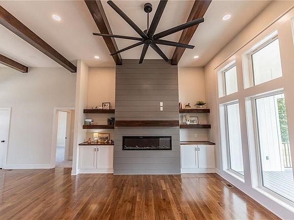 Welcome to your dream home at 12749 NE Cherokee Drive, nestled in the serene Deer Creek Lake Subdivision of Adrian, MO. This brand new custom-built home exudes luxury and sophistication with every detail meticulously designed for modern living & comfort. As you step through the welcoming entryway, you’ll be captivated by the expansive living room featuring huge windows that frame peaceful views of the surrounding acreage. The high ceilings adorned with custom beams enhance the airy ambiance, seamlessly flowing into the kitchen and dining area. The kitchen is a chef’s delight, boasting custom cabinets, gleaming quartz countertops, and a high-end appliance package. The massive island offers extra seating and ample space for meal preparation, while the large butler's pantry is well-appointed with shelving, additional countertops, and more storage. The private master suite is a luxurious retreat, thoughtfully situated away from the secondary bedrooms. It features a spa-like bathroom with a large custom-tiled shower, a gorgeous soaking tub, custom cabinetry, and a water closet. The master walk-in closet, complete with custom built-ins, offers abundant storage space.Two secondary bedrooms share a spacious Jack and Jill bathroom, perfect for family or guests. The main floor also includes a mudroom with custom built-ins and a large laundry room. Beautiful hardwood floors run throughout the entryway, living room, kitchen, and dining area, adding warmth and elegance. Off the dining room, a covered deck provides a perfect spot for peaceful mornings with a cup of coffee, enjoying the quiet solitude of the area. The basement is a blank canvas, ready to be finished to suit your needs. There’s plenty of room for additional bedrooms & bathroom. Situated on a quiet cul-de-sac and backing to trees, this home offers the ultimate in privacy and tranquility. Don't miss this opportunity to own a stunning custom-built home. Schedule your showing today and step into your forever home!