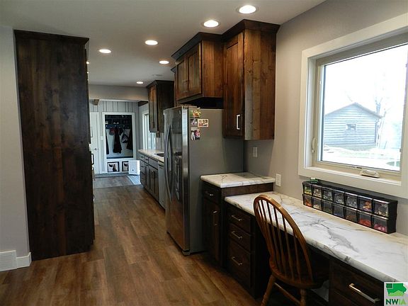 Welcome Home to this new Sioux Center listing. Walk in to the warm and inviting updated space. The main floor features luxury vinyl tile plank, new doors, fresh paint, custom kitchen (2019), tile surround bathtub and onyx countertop. The living room offers plenty of light and shiplap feature. The main floor is also where you will find the large master bedroom with new carpet. Enjoy the charm of a family room including a fireplace, the perfect place to relax with a good book. Take a walk up the steps to find 2 large bedrooms with new carpet and a 3/4 bath. This home has all new windows, 5 year old shingles, foam insulation in the attic. The basement is clean and well maintained with plenty of storage. The backyard is large with a concrete patio, nicely landscaped with established trees. This property also includes a 2 stall detached garage for additional vehicles and storage. Don't miss this fabulous opportunity.