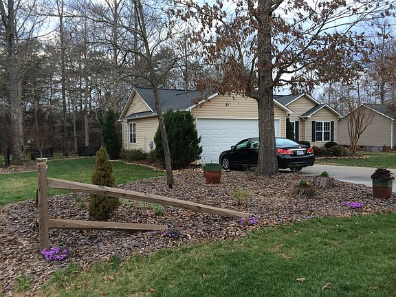 Beautiful single-level 3 bedroom, 2 bath home located in a cul-de-sac neighborhood in the East Rowan area. 1,400 sq. ft. sitting on almost a half an acre lot with large trees for shade and privacy and a fully-landscaped yard. Back deck and large backyard for additional outdoor entertaining which overlook a wooded area and pasture. Large master's suite features walk-in closet and full master bath. Large living room featuring a vaulted ceiling and open floor plan between living and dining areas. Lots of windows throughout the home providing tons of natural light. Large driveway and 2-car garage for plenty of parking. Large 10x16 storage building in the backyard. Peaceful setting in a small community located just 1.5 miles from the beautiful Dan Nicholas Park and 5 miles from High Rock Lake. No city taxes, HOA, or city water dues. Rural setting yet minutes from I-85, shopping and dining. Don't miss this charming, very well-kept home in a lovely, peaceful neighborhood!