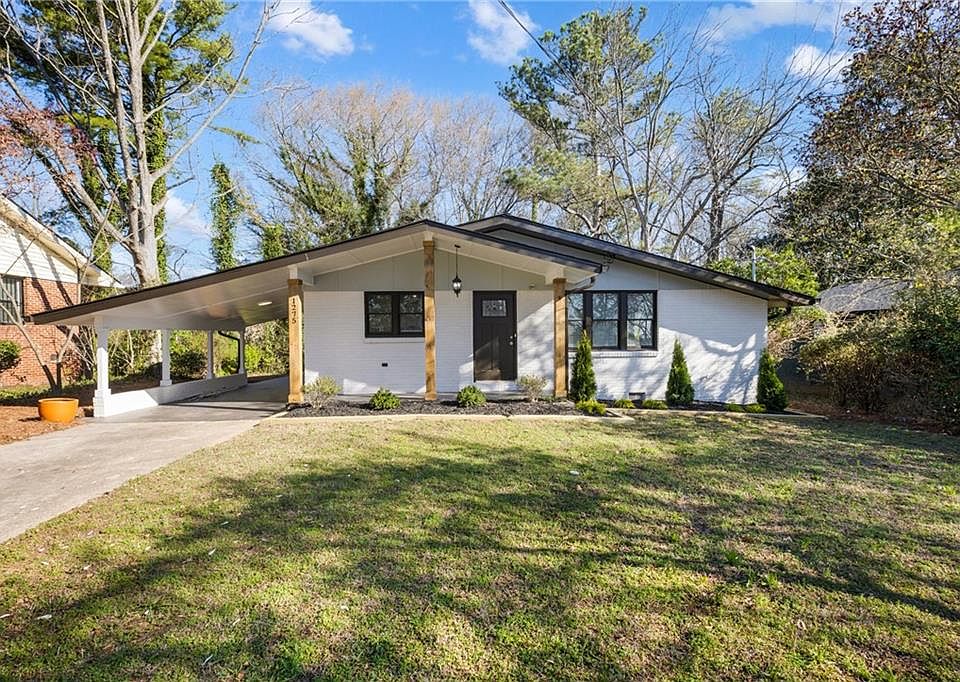 Welcome to this captivating mid-century modern brick home that seamlessly blends classic charm with contemporary updates. Step inside to discover beautifully refurbished hardwood floors flowing throughout the living spaces, creating a warm and inviting atmosphere. The thoughtfully renovated primary bathroom showcases a spacious walk-in shower featuring floor-to-ceiling tile work, elegant glass doors, and carefully selected modern fixtures. The kitchen stands as a testament to timeless design, boasting stunning stone countertops paired with an eye-catching herringbone stone tile backsplash. Abundant cabinet space and a dedicated coffee station area make morning routines a pleasure. This three-bedroom, two-bathroom home embraces open-concept living while maintaining distinct spaces through custom wall accents and sophisticated lighting fixtures. The dining area naturally connects to both the kitchen and living room, creating an ideal flow for entertaining. Outdoor living is equally appealing with a recently sodded backyard offering a fresh canvas for gardening or recreation. The covered side porch, accessible from the great room, extends your living space outdoors, perfect for morning coffee or evening gatherings. The location offers exceptional convenience, with easy access to local schools, public transportation, shopping, and parks. This renovated gem combines suburban tranquility with urban accessibility, making it an ideal place to call home.