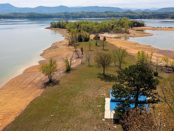 Charming Douglas Lake home on a unique level waterfront 104+/- acres (2 parcels). Prop ID 098 ED 015.00 and 089 065.00 Opportunity of a lifetime to own your very own unique escape at the end of the cul-de-sac. Minutes from quaint downtown Dandridge, Dollywood, & Sevierville area. A picturesque view of the smokey mountains on the horizon of Douglas Lake. Very private acreage, islands surrounded on 3 sides by water, your own beautiful private retreat. Larger parcel is mainly under water during full pool periods of the year, lots of acreage and space to utilize as you wish, fishing, water sports, walking trails, some trees, and a level shoreline beach of your own, floating boat dock/ramp, storage for your water toys, and covered shelter outbuilding for entertaining & cookouts. 2 Wells on property - one private and one is shared. septic info in doc folder 2 br , Interior features many upgrades, open floor plan, gourmet kitchen, Bosch dishwasher, gas cooktop/hood, wall oven, living room with fireplace, formal den and a sunroom with breathtaking lake and mountain views, and an extra 3rd room to use as you wish! This is a one of a kind place to call home