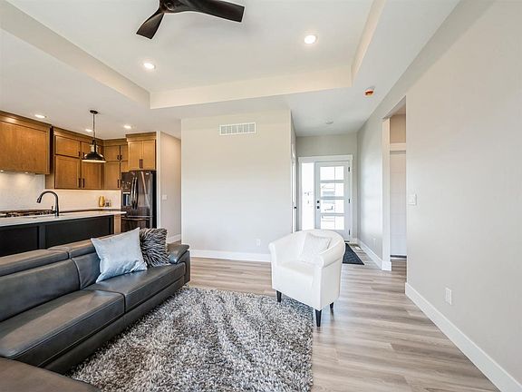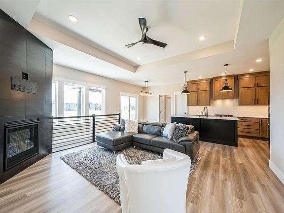 Welcome to this stunning new construction home that seamlessly blends modern luxury with functional design. Step inside and you're greeted by an expansive open floor plan highlighted by 9-10 foot tray ceilings, and tiled fireplace, creating a sense of airy spaciousness throughout. The heart of the home is kitchen, where you can gather around the large quartz kitchen island, check out the custom hood vent, and a convenient walk-in pantry for ample storage. Tiled showers in the bathrooms add a touch of elegance, complemented by modern fixtures and finishes. The primary suit continues with the tray ceilings, walk-in closet, double bathroom vanities with beautiful tile work up to the ceiling, and one of the biggest mirrors we have seen! Step out onto your covered patio that also continues with the stylish touches on the inside of the home. Back inside the lower level has an additional bedroom, full bathroom, and a bonus room that would make for a great kids toy room, home gym, or office! The lower level is another awesome space for entertaining with a built in fireplace centered in the middle of the large family room that also has a sleek wet bar with drink fridge included! Don't miss out on this property! Sod to be completed prior to closings.