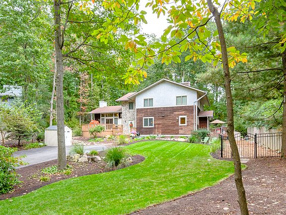 It's Extraordinary! You'll love this amazing custom home nestled on a spectacular hillside setting in Barclay Forest, where indoor and outdoor living space comingle perfectly! The current owners have exhibited incredible attention to design and detail, and uncompromising commitment to style and a fine appreciation of the latest in "green" energy efficiency. This home is so perfect for entertaining! All the renovations and remodeling were made to accentuate space, storage and functionality in this gorgeous natural setting. A long driveway leads you to a 2-tier entrance deck from which you can enjoy private views. Enter the large foyer and you will instantly feel the spaciousness this home offers. A large great room with cathedral ceiling and gas vent-free fireplace built into a stone wall, allows you to enjoy the views to the front deck, and to one of the multiple bluestone patios off the back. The lovely dining room is ready for entertaining a large crowd and can easily fit an oversized table. The kitchen is huge and offers tons of counter & cabinet space, as well as a movable & expandable center island, a pantry closet, separate desk area, and even a separate breakfast area. It is nicely maintained and offers updated stainless appliances, light pine cabinetry, ceramic tile floors & backsplash. The family room is adjacent to the kitchen and boasts a 2nd fireplace, which is wood burning. To complete the 1st floor, a beautifully redone full bath connects to the 1st floor bedroom, making it perfect for a guest suite. Upstairs you will find an incredible master suite with office area, built in cabinetry, and 2 walk in closets. The master bath offers a separate vanity area, garden tub and separate shower. Two additional bedrooms, a large laundry room with storage plus attic access, and a full bath finish the 2nd floor. The lower level was recently completed and it is astounding! Here you will find a yoga-zone, a play room, an exciting movie theatre, an office, and 2 separate storage rooms! Outside, the owners have added 40K in landscaping, hillside drainage, retaining walls, lighting, patios, decks, sheds and even a terrific dog run area! This home gives you privacy, a wooded setting, over 4000 Sqft of finished living space, lots of storage, and much more, plus all the conveniences that this popular neighborhood is known for!