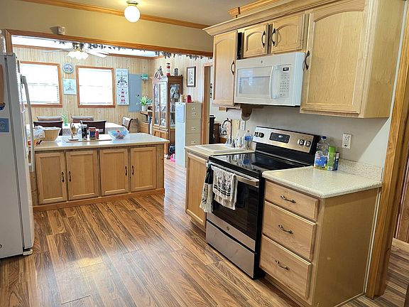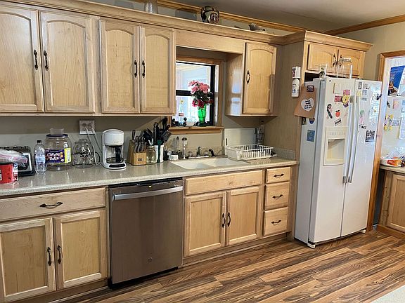 Log sided home in a private setting on 30+/- acres! This spacious home features 3 bedrooms and 3 full baths with lots of extras. Laminate flooring, eat-in kitchen with appliances, washer and dryer included, metal roof, covered front porch. Home has well water. Unfinished log sided tiny home, 2 storage buildings. Apple trees, black berry and blueberry bushes. Great hunting area. RV Hookup with septic. Unrestricted.