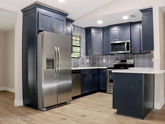 Fully renovated pool home. 3 Bedroom, 1.5 Bath, 1 Car Garage, Located In SW Palm Bay. Brand new, roof, HVAC, luxury vinyl flooring, fans and high end light fixtures, kitchen with quartz counter tops. Wait until you see this large completely fenced in manicured back yard with mature trees and landscape. Beautiful screened in pool / patio with granite table top inside the pool to enjoy this amazing outdoor paradise. Septic tank was recently pumped.