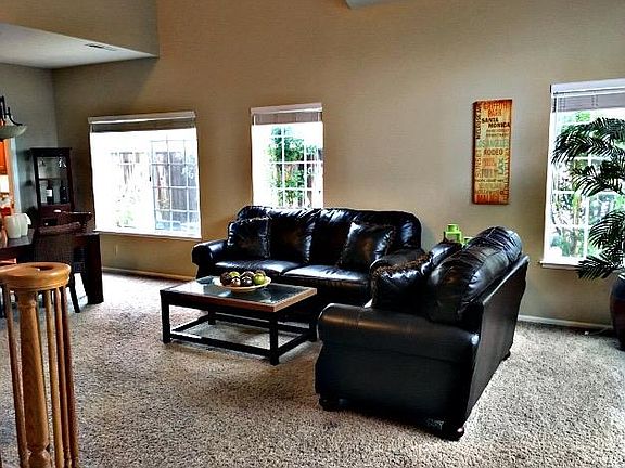 Entertainer's delight ready for your largest gatherings. Wonderfully dramatic 5 bedroom 3 full bath Creekbridge home a great value at a fantastic price. This home features an open concept floor plan starting with a soaring two story entry ceiling. This home also features vaulted ceilings in all bedrooms. 9 foot family room and kitchen ceilings with recessed lighting. In addition a chefs kitchen with granite counters, copper sink, island, computer desk, pantry closet and full height backsplash. There is a separate family room with romantic wood burning fireplace that is large enough to accommodate the largest of Super Bowl parties. It connects seamlessly to a large private backyard (including huge side yard) and all of the space that it offers. Bamboo hardwood in entry, kitchen and family room. The enormous master bedroom sanctuary easily accommodates a seating area to relax in. Downstairs bedroom perfect for in-laws. Finished garage. All done with a decorator's touch.