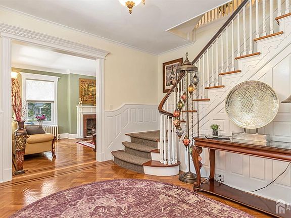 Located in the highly sought-after Netherwood Historic District, this stunning Dutch Colonial is just minutes from the Netherwood train station, offering a quick and convenient commute to NYC. Perfect for generational living, this meticulously renovated home seamlessly combines timeless charm with modern functionality. As you approach, an expansive front porch welcomes you, adorned with exquisite and unique wood columns and diamond lattice windows, highlighting the historic essence of the property. Inside, high-end renovations have enhanced the living space, blending preserved historic woods with new classic finishes. The home features a formal living room, dining room, family room, and two sunrooms, providing ample space for relaxation and entertaining. Beautiful hardwood floors flow throughout, leading to a gourmet kitchen with a stunning expansion, top-of-the-line appliances, and a new roof. The finished basement offers a kitchenette, full bath, and an expansive office ideal for remote work or additional living space. The second floor hosts six spacious bedrooms, while the third floor includes two additional bedrooms. With 4.5 updated baths, this home offers comfort and convenience for everyone. Outside, the property includes approved plans for a 3-car garage and sits on a large lot with potential to build. Ample parking for multiple vehicles ensures ease for residents and guests alike.
