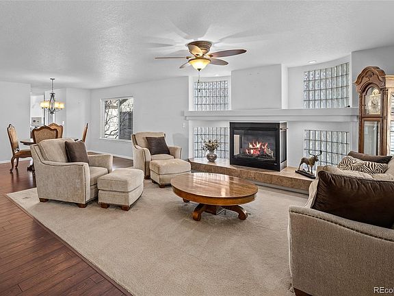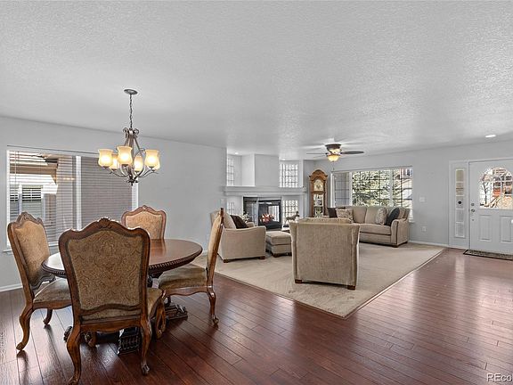 This gorgeous two story home is nestled on a quiet cul-de-sac close to Ridgeline open space and the Grange (Pool and community center)! As you enter the home the family room features a three sided fireplace with adjoining dining room. The incredible kitchen has plenty of space to entertain while preparing your favorite meal. Kitchen features granite countertops and a large kitchen island plus pantry. Don't miss the views from the expansive deck (12x40) just outside the kitchen the views of the front range 14'rs are amazing! Back inside the family room has surround sound and another gas fireplace to keep you warm on those chilly nights. Upstairs features a loft, four bedrooms, and two full bathrooms. The wonderful loft is perfect for game room, computer work space or whatever works well for your needs. The extra spacious primary bedroom has plenty of room for all your furnishings! Adjacent to the five piece bathroom with dual large closets! Guest bedrooms are generously open for plenty of room for family and guests. Additional features of this wonderful home include; all appliances, washer/dryer, dual furnaces and central air conditioning systems, four car tandem garage, ceiling fans in all rooms, walkout basement to a wonderful private patio.