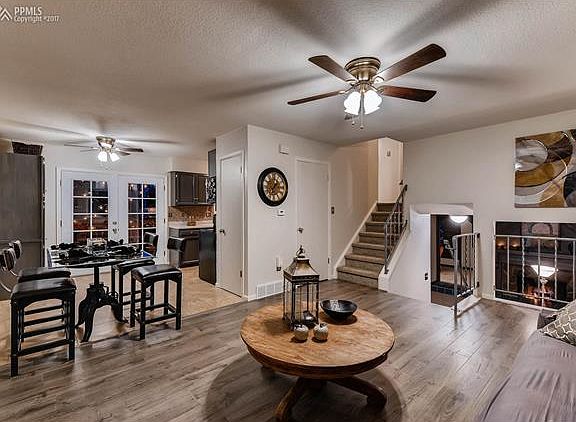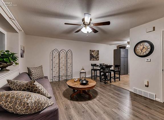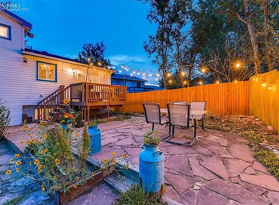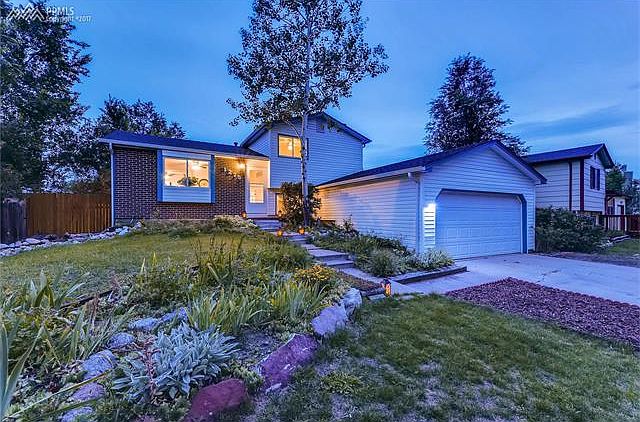 This hidden gem has been just been completely renovated and is full of delightful surprises! A seasonal view of Pike Peak from the living room! A lower level man-cave complete with bar and floor to ceiling windows to let in tons of natural light and views of the beautiful private back yard complete with flag stone dining patio and raised deck that extends the interior???s dining area and includes a seating bench with flower containers on each end. Brand new French doors open to this walkout deck from the dining area. The open floor plan of the main floor has textured laminate wood flooring coordinating with the large ceramic tiles in the kitchen and brand new Stainless-steel appliances. A modern color palette of soft grays and whites in every room and a spectacular spa like bathroom. Every bedroom on the upper level has a walk-in closet! The lowest level has a spacious laundry room with hanging rods and storage shelves and folding counter as well as another bedroom and a bonus room currently used as an art studio. A wood burning fire place casts its glowy ambiance throughout the lower living room as well as the upper living room so everyone can enjoy! Every inch of this home has New Paint, New Carpet and New Flooring. 3 bedrooms with the man cave option as a 4th bedroom or guest room since it has a closet, 2 Bathrooms and 2 car garage with storage and work bench space. Entire yard front and back is landscaped with back yard being fully fenced, and is so quiet and private that multiple birds??? nests are full of chirping baby birdies every spring! Walk-out deck is 2 level measuring 18 x 18 ft! The list of updates is extensive and will be attached as a supplement in the MLS.