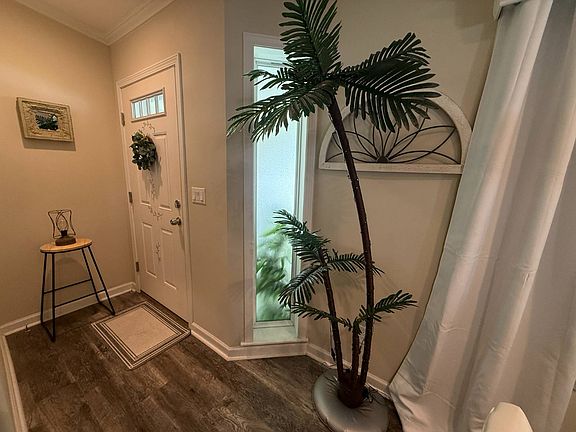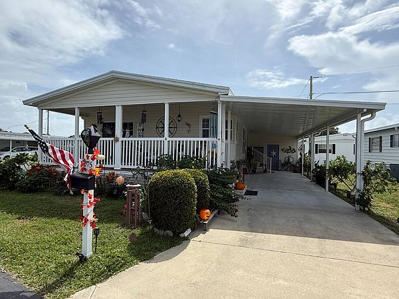 Discover the perfect blend of comfort, style, and convenience in this beautiful 2-bedroom, 2-bathroom home located in the sought-after Colonial Colony South community. As one of the newest homes in the area, it sits on a lush green corner lot featuring meticulously maintained landscaping and vibrant greenery, providing both privacy and curb appeal. The spacious carport offers ample parking for multiple vehicles, while the large shed meets all your storage needs. Step inside through the welcoming foyer to find an open-concept, fully upgraded kitchen equipped with top-of-the-line Whirlpool appliances and a bar area ideal for entertaining. The adjacent living area is bathed in natural light, complemented by a cozy fireplace that creates a relaxing atmosphere year-round. The master suite is a true retreat, featuring a generous bedroom, a walk-in closet, and a fully upgraded luxurious ensuite bathroom with a walk-in shower and double vanities. Guests will feel right at home in the spacious guest bedroom, conveniently located near the fully upgraded guest bathroom, which boasts a soaking tub perfect for unwinding after a long day. The laundry area, equipped with additional storage, is conveniently situated across from the guest bedroom for easy access. Step outside through beautiful hurricane proof sliding doors and enjoy Florida living at its finest on the open front deck and patio, surrounded by a charming picket fence-perfect for sipping your morning coffee or relaxing in the evening while taking in the beautiful views. This 1,352-square-foot home comes partially furnished and includes numerous upgrades, such as a 2020 roof, 2018 A/C unit, wood blinds, and soft-close kitchen drawers. With a well-designed layout and countless amenities, this home truly has it all! Lot rent is $800.00, which also includes water and all amenities that Colonial Colony South offers.