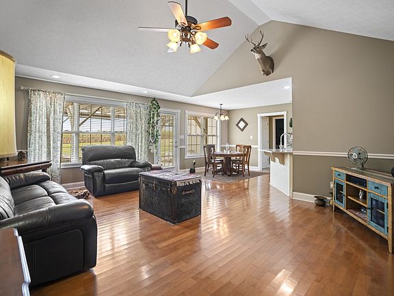 Ranch Style Home in Three Springs Subdivision! This well maintained home has a spacious living room, updated eat-in kitchen with granite countertops and stainless steel appliances, formal dining room, walk in laundry room and more. Hardwood floors in common areas and carpet in bedrooms.  Enjoy the outdoors on the covered front porch or backyard patio with a pergola.  It has a 2 car attached and a 4 car detached garage with a finished insulated work shop and electric.  It is located in a quiet, rural setting, offering both privacy and convenience. Must see it!!!