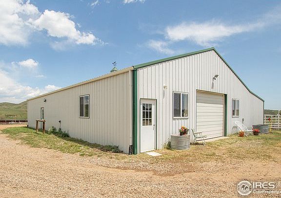 WOW! 35 acres of tranquil CO foothills landscape. Just 1 mi down from Carter Lake & 1/2 mi. off blacktop, you'll find a seasonal stream, a pond & deer grazing. Beautifully remodeled home w/ $50K exterior refinish, huge deck, hickory hardwoods & EPIC views! DREAM 3300 SQFT Shop/Garage is heated, insulated, tall door, 240v, security lights, & water w/ 3 stall barn or more shop space! Auto-heated waters/ corrals/ & fenced! Come ride, hike & walk the trails throughout your own piece of the dream!