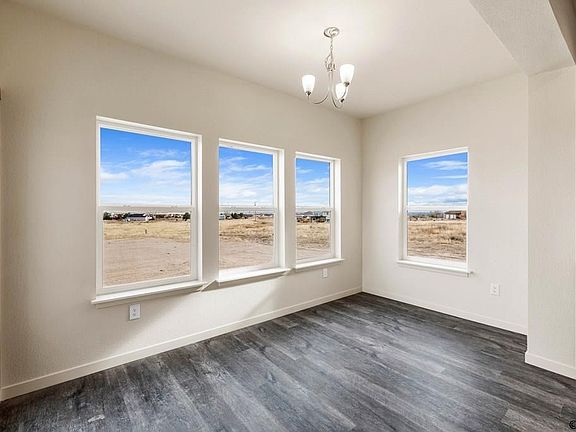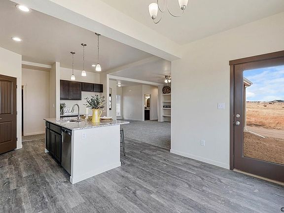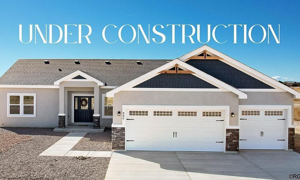 Spacious one-level living! This spectacular ranch-style home will definitely impress you! As you head inside this home, you find the dining room which is just off of the entry way and a spacious living room straight ahead with built-in shelves and a cozy electric fireplace. The living room opens up nicely to the kitchen for an open-concept design. The Kitchen has recessed lighting, a pantry, stainless steel appliances (no Fridge), rich brown cabinets, a large center island with quartz countertops, counter bar seating and more. Just off the kitchen is the breakfast nook. It has large windows and a walk-out to the backyard where you'll find lots of room for entertaining. The master suite is very spacious and adjoins a 5 pc master bath with quartz countertops and a walk-in closet. The laundry/mud room has access to the 3 car attached garage with 2 garage door openers. Front yard will be xeriscaped. Located in beautiful Pueblo West on Acreage Lot located by Lake Pueblo and Close to Hiking and Biking Trails.