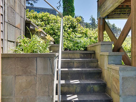 TWO DECKS with OCEAN VIEWS and two stories with ROMANTIC CHARM. Classic Oceanside Village home with modern make-over for EZ living. Master on main w/fireplace, jetted tub/dbl sinks. Kitchen w/granite, SS appliances & chef's Viking gas range w/dbl oven. Hardwoods throughout. Large lower level bonus room w/full bath & bedroom. Slider to yard - beach across the street! Good size single garage w/ample driveway parking. Excellent rental history.Appointment only. Check out the Matterport 3-D tour!