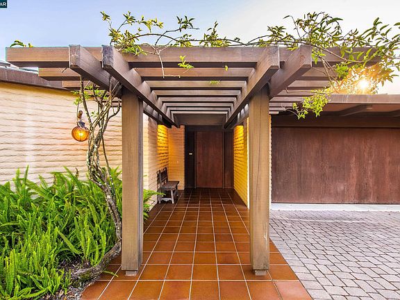 Situated atop a private 2-acre knoll and embraced by stately oaks, this custom Mid-Century Modern gem is a rare offering in the heart of Lafayette’s coveted Happy Valley. Designed for seamless single-level California indoor-outdoor living, this unique home celebrates light and nature with timeless design. The floor plan offers 4 bedrooms, including a private master retreat with office and deck, a guest suite, and 3.5 baths with the majority of rooms opening onto the tiled loggia. Step outside to a sparkling pool and patio perfect for relaxation or entertaining, an extensive level yard and the vistas beyond. Evening breezes flow easily and deer and birds frequent the property. A detached structure with lower level storage room expands possibilities for work, fitness, or creative pursuits. With easy access to top-rated Happy Valley Elementary, BART, Lafayette’s vibrant retail, and miles of hiking adventure at your doorstep, this residence offers not only striking architecture and privacy but also fantastic convenience!