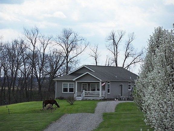 Lovely Country Home with 6.53 acres of gently rolling meadows and pasture area. Sets back long 650 ft graveled country lane. Creek frontage and camping area. Large shelter for RV storage or those large family reunions! The best of country living with woods, pasture, creek, and beautiful views of surrounding southern Ohio hills!!! Propane fire place in family room. Has two full bathrooms one being a master bathroom with garden tub and separate full shower and a very spacious walk in closet. New carpet 2017 New metal roof fall 2019, New Electric furnace and heat pump summer of 2018, new 50 gal electric hot water heater summer of 2018 Call (740-701-2905)