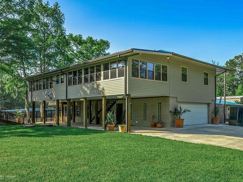 Located at 1275 Pine Island Road, near the popular Big Pines Lodge, this BEAUTIFUL waterfront property overlooks Big Cypress Bayou and Caddo Lake! This property is shaded with tall hardwood and cypress trees. Boating, fishing and water sports are as close as the front yard! Enjoy your morning coffee on your large deck thats sets over the river just above the two slip boat house. Once you finish taking in everything outside has to offer make your way upstairs into the beautifully finished 3060 sqft living area with heated & cooled wrap around porches. Downstairs you will find a large sunroom with an additional bedroom & half bath with garage access. This home also comes with an elevator to send grocery upstairs or send someone up who struggles with stairs! This Place has it all! schedule your private tour today before it is too late!