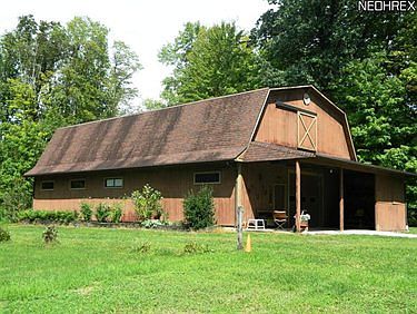 A rare find indeed! This is a spacious 4BR, 2.5BA home & barn on almost 6 1/2 scenic acres of open & wooded land that's adjacent to the new Liberty Metro Park. It's ideal horse property, the big 36 x 60 barn has 5-7 box stalls and a wash rack. The hayloft could easily hold a thousand bales of hay. There is a big pasture area with a sand arena, which is not currently fenced. The home has been very well maintained and offers a large eat-in kitchen that is open to a big family room with a wood burning fireplace. There is also a full basement and the 4th bedroom could be used as an additional living suite. Enjoy the tranquility of the park like yard from the screened in sun room. Don't miss this one!
