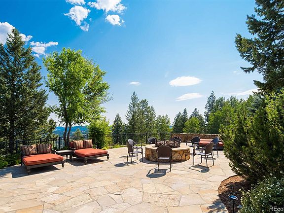 Spectacular Rocky Mountain living and entertaining starts here at 1275 Silver Tip Lane, a meticulously maintained 14-acre family estate in idyllic Evergreen, just 1 hour from skiing and DIA, and only 30 minutes to Denver. The magnificent grounds, manicured lawns and bountiful gardens are among the best in Soda Creek and rare to the area. With over 16,000 SF of private mountain luxury, you'll enjoy a peaceful setting surrounded by aspens, pine, and lush native terrain with expansive outdoor terraces featuring 2 gas fireplaces, an outdoor kitchen & sweeping mountain views. 5 beds, 10 baths, full-size tennis court with viewing deck, indoor pool & spa, gym, theatre, temp-controlled wine room, bar & large, inviting library providing extensive additional living and entertaining spaces. Porte cochère wrapped in natural stone, dramatic pecan millwork, double height ceilings, timeless designer upgrades & oversized windows throughout. Gourmet kitchen is fit for a chef & richly appointed with built-in appliances, ample custom cabinetry, walk-in pantry, desk with storage & glass ceiling that fills the space with natural light. Open concept affords a breakfast area for coffee & casual dining, as well as inviting den with stone fireplace. Generous master bedroom boasts a jewel box sitting area, cozy gas fireplace, spa-quality bath, walk-in closets, private terrace overlooking the grounds & access to a French door study. Bonus office suite with its own parking & entry perfect for remote working. Guest beds are equally comfortable & all en-suite, each with their own patio. Everyone will love the gracious sun room with water feature and multiple living areas with custom touches including arched windows bringing the outdoors in. Host a tasting in the bar or wine room, retreat to lower level theatre for movie night, or head to the mountain-view terrace, after evening tennis & unwind around the fire. Every detail of this majestic home allows you to live, work, and play with ease.