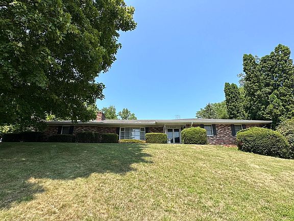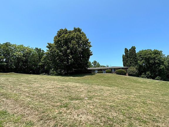 Discover this midcentury home set on four parcels of land totaling 12.42 +/- acres. The property features an attached oversized two-car garage with washer / dryer hookup, three bedrooms, two full baths, a large sunken family room with a fireplace, central vacuum system, a partially finished basement with a bar & sitting area, an inground pool with a cabana, an oversized detached four-car garage with studio space and much more! Enter through the French doors into the foyer, where you'll find a coat closet. To the left, the sunken family room awaits with a brick fireplace and breathtaking views from the front windows. Adjacent is the dining room, which leads into the patio area or kitchen. Your kitchen boasts a built-in desk space and a breakfast bar. Down the hall you'll find an additional closet &directly ahead the full hall bath includes a sunken soaking tub, dual sinks, and storage closet. The impressive primary bedroom features a private balcony, full bath with a sunken shower, large walk-in closet with laundry chute to the basement laundry area. Your two additional bedrooms are located in the hall. The partially finished basement offers an additional fireplace, large bar, two sitting areas, and an unfinished storage space with shelving. Back upstairs step out from the dining room onto the patio, where you'll find an inground kidney shaped pool, a pool house with half bath, and a delightful, covered patio area with a balcony overlooking the property giving an impressive view. The detached oversized four-car garage in the rear of the house includes an enclosed space previously used by a notable stained-glass company. This home is nestled in a peaceful setting and holds tremendous potential. Call to schedule your private showing today!