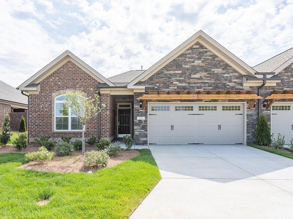 The private primary suite has a tray ceiling in the bedroom and a spacious private primary bathroom that features a large, enclosed shower and oversized linen closet. The great room has vaulted ceilings and a gas-log fireplace. This townhome asl features a sunroom adding tons of natural light! The galley-style kitchen has a huge island, and buffet offering plenty of storage. The formal dining area sits on the other side of the kitchen and is open to the great room. The second bedroom has a vaulted ceiling and shares the hallway with the second full bathroom, and the third bedroom. Don't miss your opportunity to own this sophisticated floor plan in an exclusive community! Enjoy maintenance-free yards, clubhouse, pool, and fitness area. Pictures are similar to the one being built.