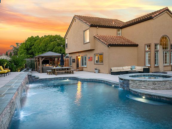 STUNNING HOME IN HIGHLY DESIRED SPINNAKER RIDGE - Two-Story 5 Bedroom/3 full bath with private bedroom and bathroom on first floor. Just shy of 2700 sq. feet this home boasts updated Kitchen equipped with double stainless refrigerator, built in ice maker, gorgeous countertops, convection oven and microwave, wine and beverage cooler, pantry and newer life proof laminate flooring throughout. Grand staircase leads to spacious primary Bedroom with ensuite to include double sinks, soaking tub and dual closets. New mirrors and lighting in all bathrooms. This newly renovated backyard is an Entertainers Paradise with newer in ground pool and spa complete with waterfalls and Acapulco entry to enjoy all the days of summer. Double large over hang complete with built in barbeque, storage, counter and bar seating space, LED remote lighting, television, refrigerator, countertop fireplace with additional custom natural gas fireplace. 20x30 Sport Court pre- plumbed at breaker for 300 watt lighting, custom all organic chicken coop with 6 nesting boxes that house up to 20 chickens. Spacious separately gated side yard with plenty of room for Boat, RV or both! Nestled in the back of a court, close to biking/walking trails, downtown Farmers market and local shops. It's a must see!!