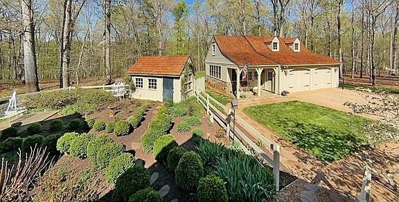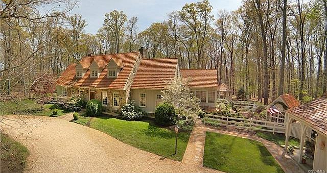 Located on an enchanting 11+ acre parcel, "Stone House" offers comfortable living spaces in an English cottage setting! It offers over 4,800 sqft of living space, including a welcoming and handsome foyer/living/dining room combination with two fireplaces and lovely built-ins. The open family room and kitchen together offer another fireplace, generous storage, a dining area, and a large work island. Overlooking the precious English garden is the cheerful Florida Room, and in the opposite wing of the home is the private first-floor master suite. Upstairs are three more bedrooms (one is a 2-room suite), two more baths, an office and laundry center. Outside features include a charming detached garage with a separate garden room (or workshop) with a bath, a large gazebo for entertaining, terraces - both large and small, an adorable storage shed, and gorgeous landscaping with spectacular trees and plantings! With its exterior board and batten/stone details, and an exceptionally appealing overall design, "Stone House" is a most special offering! Sabot Hill Community amenities includes access to Dover Lake, the James River, Sabot Flying Field, and bridle trails. Shown by appointment.