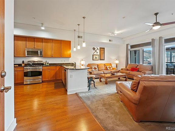 This meticulously maintained property is your launching point for all things Colorado. Easily access I-70 to the mountains, HWY 93 to Boulder, and I-470 to Red Rocks. Choose to stay close to home and enjoy hiking, biking, climbing, Clear Creek activities, and scenic paths, adventures are quite literally right outside. Golden is a tight-knit community and it is easy to immerse yourself in the plethora of activities and events throughout the year. Music festivals, movies in the park, Buffalo Bill Days, car shows, farmers markets, CO School of Mines events, and beyond, there's always something exciting happening just steps from your door. Indulge in the vibrant downtown atmosphere with a short stroll to an array of shops, fine dining establishments, museums, breweries, and historical sites. When the mountain adventures, local outings, and shopping have ended, relax with a treatment from the spa immediately downstairs in the building! The condo is accentuated with SS appliances, granite counters, high ceilings, a gas fireplace, hardwood flooring, built-in shelving, and custom lighting, creating an inviting ambiance for everyday living. An expansive patio is great for quiet dinners, quaint gatherings, and enjoying the views of North Table Mesa. The primary retreat in the unit exhibits a luxury 5-piece bathroom, an oversized bedroom, and a walk-in closet. The convenience of a private keyed entry on Washington ensures security and peace of mind. A deeded parking spot in the secure community garage and a sizable storage room for outdoor gear round out the amenities. Gateway Station is the perfect base camp for all your Colorado adventures both near and far! Experience the epitome of urban living combined with the charming community of Golden.