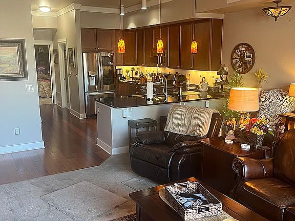 Wow! This custom built 4th-floor end hallway unit w/ $20k of renovations. Bedroom w/ Cherry Wood Murphy Bed, 2 built-in desks, bookcases & cabinets. Kitchen granite counters, hardwood flrs & SS appliances. Living room fireplace & 2nd full size Murphy Bed. Custom pantry cabinet w/ wine rack. 92-WalkScore w/ restaurants, coffee shops, shopping, art galleries nearby. Close to hiking, trails along the river & MUCH more! Secure building and underground parking. Building elevator. See yourself Living The Dream in Downtown Golden! Will not disappoint. All NEW APPLIANCES, Toilets, Faucets, Water Heater, Paint, Carpet, Lighting, Fan, Wall mounted TVs and new Glass Shower door ! It’s the little secret in Golden. Monthly utilities $150, monthly HOA $283 (includes Water, Gas) and Annual Property tax less than $5000. And finally, it’s just minutes away from scenic Lookout Mountain and the final resting place of legendary Buffalo Bill, the world famous Coors plant, hiking Table Top Mountain and getting to walk to watch the national ranked Colorado School of Mines Football team.