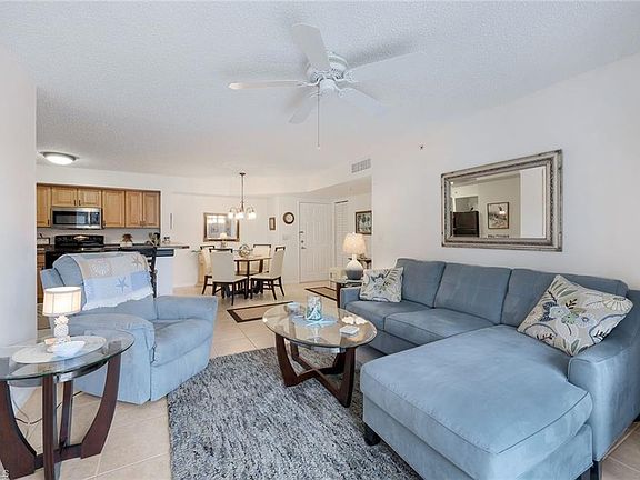 Experience refined coastal living in this beautifully appointed 2-bedroom, 2-bath residence, gracefully situated within the coveted Enclave community of Naples, Florida. This sophisticated condo welcomes you with an airy, sunlit open floor plan that effortlessly blends timeless style and modern comfort. The kitchen showcases sleek cabinetry, modern black appliances, and generous counter space—an ideal setting for both everyday culinary moments and effortless entertaining. Step out onto your private lanai and savor captivating sunrise views that set the tone for tranquil mornings and serene evenings. Both bedrooms offer peaceful sanctuaries with spacious closets, while the elegantly updated bathrooms feature contemporary finishes that elevate your daily routine with a touch of luxury. The building is perfectly positioned next to the community clubhouse. This residence offers added convenience and effortless access to the heart of the neighborhood’s amenities. The Enclave community enhances your lifestyle with an exceptional array of resort-style features, including a sparkling pool, well-equipped fitness center, indoor racquetball court, expansive green spaces, and a beautifully maintained barbecue and picnic area. Ideally located near Naples’ finest shopping, dining, and world-famous white-sand beaches, this residence captures the essence of effortless Florida living. Whether you’re seeking a refined seasonal retreat or a year-round home, this condo delivers an exceptional blend of elegance, comfort, and convenience.
