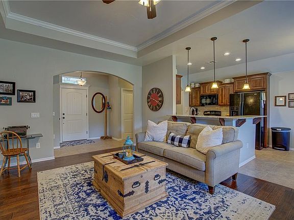 This well maintained home is an absolute charmer with it's quaint & picturesque setting. The home is set back from the wide maintained road, and is located not too far from I-35. The spacious living area has high ceilings, tons of natural light, a wood burning fireplace, newer wood floors, and is open to the kitchen and dining area. The kitchen has ample cabinet space, granite countertops, and breakfast bar. The large master bedroom has a bay window, walk-in closet, full bath with double sinks, and separate shower & soaking tub. The secondary bedrooms are all of good size with oversized closets. Most of the 2 acres is in the backyard, and it has so many possibilities. It has a covered patio with dual ceiling fans, and there's plenty of room for a garden or chicken coop. You could also just enjoy the wildlife that visits the property occasionally. This lovely home has other updates that include new water softener, custom closet shelving, and more. Schedule your showing today!
