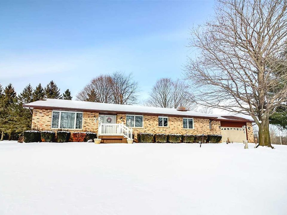 This beautiful brick ranch perched on a hill overlooking 32 rolling acres is in NW School District. This home was completely rebuilt in 2012 after a fire. Quality craftsmanship through out. Granite counters accent the kitchen and baths. 30x40 Pole Barn and your very own chicken coop. Chickens are negotiable.